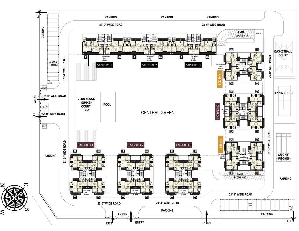 SBP Embassy Court offers an unmatched lifestyle with over 100,000 sq. ft. of dedicated recreational and leisure spaces. Residents can enjoy a state-of-the-art clubhouse, swimming pools, fitness center, spa, landscaped gardens, jogging tracks, and multiple sports facilities. The project also emphasizes safety and convenience with 24×7 security, power backup, and well-planned parking areas.